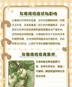 传染途径:以菌丝体或菌核潜伏于病部越冬,第二年产生分生孢子,借风雨传播,从伤口侵入,或从表皮直接侵入危害。温室月孝中湿度大,易发生灰霉病。凋谢的花和花梗不及时摘除时,往往从此类衰败的组织上先发病,然后再传到健康的花和花蕾上。