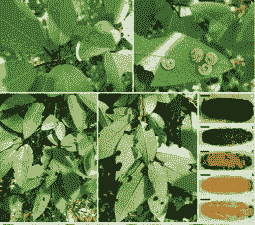 形态特征:成虫体长17-22mm。头红黄色,具细刻点;单眼周围、额和复眼上角有青铜色斑纹;颖南侧脊钩。单眼后区测沟较浅而且分开。触角以下颜面、唇基、上唇及上颚淡黄色。触角8节,端都3节膨大呈律状,基部黄色,自第三节末端开始为深黄色。前胸背板黄色,前缘黑色;中胸前盾片、中胸盾片黑色;翅基片、小盾片、后胸背板黄色;前胸腹板黄色,中胸和后胸腹板黑色。腹部背板淡黄色,、基部黑色;第二、三背板几乎全为黑色,后缘各有较宽的红黄色带;其余背板除基部为黑色外均为红黄色;腹部腹面多为红黄色。中、后足基节、转节和腿节黑色,其余黄色;雌虫腿节有较宽的黑色条纹。翅黄色透明;前翅前缘室、径室、第一中室、第二中室、第一亚中室、第一、第二肘室全部以及第三、第四时室之半、臀室全部,均为烟褐色。卵扁,肾形,最宽处08mm,最窄处0.4mm,两头圆,长3mm。初产时为鲜绿色,近孵化时,白色透明,可以见到胚胎发育未完成的幼虫,搅曲于卵壳内;卵壳的形状随着胚胎发育逐渐变成卵圆形,最宽处可增至2mm。幼虫初孵幼虫为灰白色,取食后为灰绿色。老熟幼虫体长35-40mm。将体节分成5一7小节。气门上线每节具黑色斑点1个,背线除前胸和尾节外,每节有1个小黑点。茧、蛹茧圆筒形,长18-25mm,宽8mm。虽壳牛皮纸质,内壁光滑,表面粘有枯枝落叶和泥土,显得粗糙;前端有圆盖,较易剥落。蜗长15-22mm。全身灰绿色,唇基、触角、足和翅均黄色;触角和足都曲置腹部。