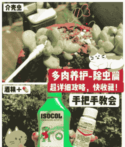 需要说明的是,该方法只是个万不得已的补救措施,针对仙人掌及多肉植物的养护需要以防为主,以治为辅。早春期间加强通风换气,适时调整盆距,密切关注各种介壳虫为害的发生和传播。