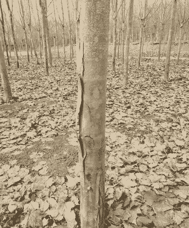 杨树的一年生条和3~5年幼树均可感病,多半发生在杨树地际以上的主干和分枝上。发病初期在树干可见褐色浸润病斑,随着上下扩展,可产生5~15cm大小稍微陷凹的梭形溃疡病斑,有时在感病的主侧枝上不呈现梭形溃疡病斑、而呈树皮大块变色坏死。发病后期,感病枝干的树皮组织逐渐呈淡黄色,同时在受害部密生隆起的黄色小颗粒点,即为病原菌的分生孢子器,约在5月中旬以后,分生孢子器逐渐成熟开裂,溢出土黄色丝状的分生孢子角,发病严重时,病斑围绕树干而诱致植株枯死。