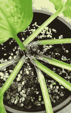 症状兰花白绢病开始发生时,在兰叶基部与盆土接触处变褐软腐,随后在病部及土壤表面出现白色绢丝状的菌丝体,呈辐射状长出,在根际土表蔓延。最后兰叶倒伏,终于使整个叶丛枯死。一筒兰草感染后,同盆的兰花均可受害。
