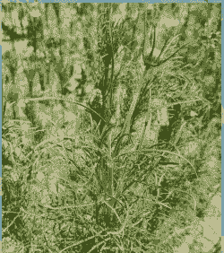 叶片变黄绿色,腋芽大量萌发,呈丛枝状。植株矮缩。花也变色。