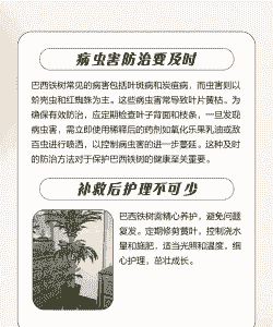 一般而言,蔗扁蛾对巴西铁苗木的危害能加重茎腐病,因而,在种植过程中,应加强栽培管理,降低湿度,及时防虫治虫。重病株经杀菌剂处理后仍然死亡,主要是由于茎腐病菌引致的腐烂已使植株茎干的韧皮部、木质部遭受严重破坏,控制病原菌后,植株已腐烂的组织无法恢复,而导致死亡。