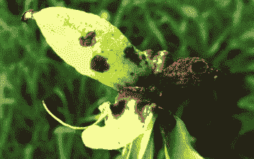 发病初期叶片上出现近圆形紫褐色斑点,直径1-5毫米,后扩大成不规则形大斑,直径7-12毫米,中央淡黄褐色,边缘紫褐色,病斑上有明显的同心轮纹。病斑扩展相连成片,严重时整叶焦枯。潮湿时病斑表面产生暗绿色霉状物,即病菌的分生孢子梗和分生孢子。叶缘发病时,叶片有些扭曲。绿色茎上为紫褐色长圆小点,有些突起,病斑扩展慢,大小仅3-5毫米。叶柄症状与茎上的病斑相似,但为长条状,其上也生有暗绿色霉状物。