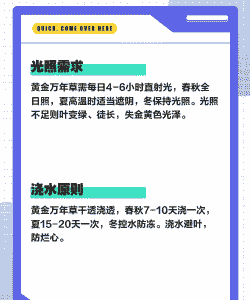 1、春季:需要保证充足的阳光和水分,让其自然生长即可。2、夏季:黄金万年草不耐高温,夏季高温植株会进入休眠期,只需要一周浇一次水即可。3、秋季:秋季是黄金草的生长期,一定要补足水分,阴天可以适当减少浇水。4、冬季:冬季温度在3℃左右尽量不要浇水了,保持盆土干燥,放在室内过冬。