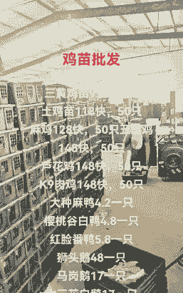 - 贵阳长鑫盛农业有限公司:1.33元/只(普通鸡苗)
