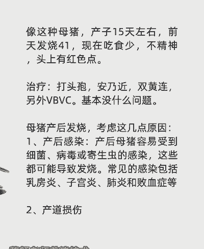 母猪生产后不发烧可能有多种原因,以下是一些可能的解决方案: