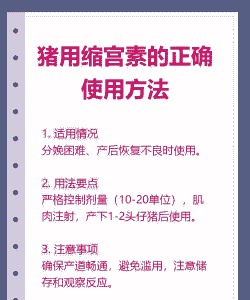 需要注意的是,缩宫素的使用应在合适的情况下进行,避免滥用。不当使用缩宫素可能导致母猪难产程度增加、产后感染风险加大、厌食、便秘和无乳等问题。因此,在使用缩宫素时,应严格按照医嘱和药物使用说明进行操作。