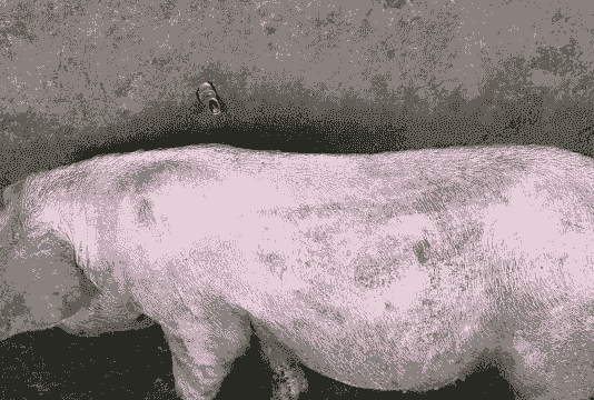 症状:母猪在产前产后体温升高,产程时间长可能导致缺氧,进而出现耳朵或全身发紫。病猪可能精神差、发热、体温在40-42℃之间,呈现稽留热,喜卧、弓背、寒颤及行走摇晃。全身皮肤、浆膜、粘膜和内脏器官可能有不同程度的出血。慢性型蓝耳病可能由急性型转变而来,表现为体温时高时低、食欲不振、便秘与腹泻交替出现、逐渐消瘦、贫血、衰弱、被毛粗乱、行走时两后肢摇晃无力、行走不稳。有些病猪的耳尖、尾端和四肢下部可能成蓝紫色或坏死、脱落,病程可能长达一个月以上,最后衰弱死亡,死亡率极高。