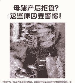 原因:初产母猪由于疼痛和疲劳,容易引发胃肠神经紊乱,导致食欲下降。
