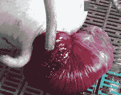 如果遇到努责,要在努责间断期进行推送。如果努责强烈,应用普鲁卡因分点封闭阴门周围,然后再推送。