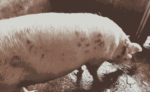 症状:母猪产后第三天出现食欲不振、不站起来吃食,背上毛孔出血。