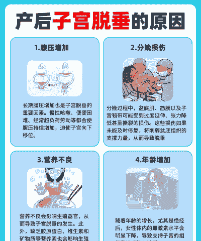 分娩时间过长,子宫收缩力减弱,子宫黏膜紧裹胎儿,随胎儿被迅速拉出而造成的宫腔负压,也会诱发子宫脱出。