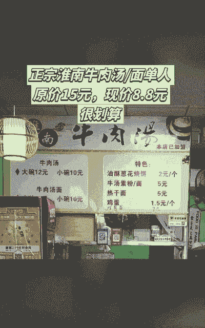 - 淮南王老三牛肉汤:原价13.9元,团购价12.9元