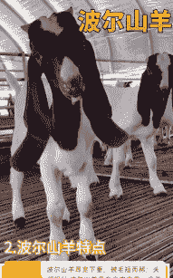波尔山羊体型较大,耳朵长而下垂,毛色以白色为主,面部有黑色斑纹,肌肉发达。