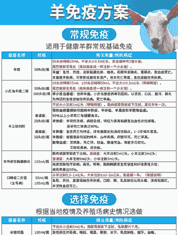初次接种:6月龄以下山羊可于3月龄开始接种