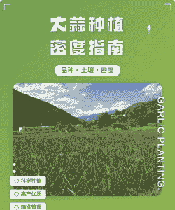 大蒜的种植密度为每亩2-3万株,株距12厘米行距20厘米,每亩需要种子大概150公斤,种植大蒜选择肥沃、排水性好的土壤,然后深耕20厘米,再做长1米、宽4米的畦,种前将种子晾晒1-2天,最后开沟栽种,沟深3厘米即可。