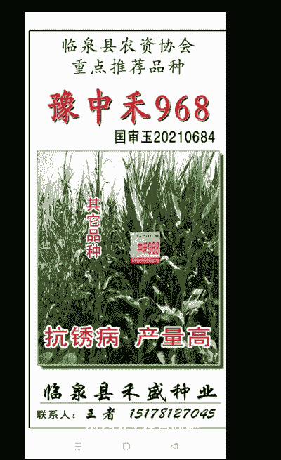 豫中禾968玉米出苗至成熟时间大约在102天左右,抗病性较强,可抗穗腐病、小斑病、瘤黑粉病、感茎腐病、弯孢叶斑病。豫中禾968玉米最佳种植时间为每年的6月中上旬,此时的温度最适合其生长和发芽,适宜在河南省、山东省、河北省、陕西省、山西省、江苏和安徽两省淮河以北地区进行种植。