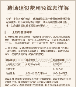 中大规模猪场 :约50万-100万元(含环保设备+配套设施)。