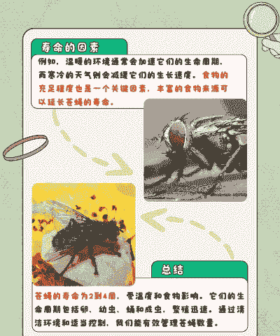 苍蝇的寿命受环境温度、湿度、食物供应等因素影响较大,不同条件下差异显著。以下是综合搜索结果的关键信息: