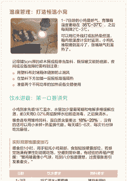 - 育雏期(0-4周龄)需控温保湿,逐渐过渡至自然环境