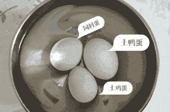 将鸡蛋放在手心,对着日光透射,土鸡蛋呈微红色且半透明,蛋黄轮廓清晰;养殖鸡蛋呈暗淡黄色且浑浊。