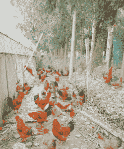 鸡舍建设- 搭建南北走向鸡舍,利用葡萄架遮雨,棚顶覆盖双层塑料膜(内层无滴膜)。