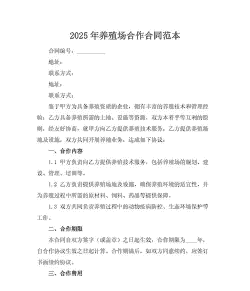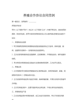 - 一般为6-12个月,双方可协商续订。 - 因不可抗力导致无法履行时,双方可解除合同。#### 二、养殖标准与技术要求