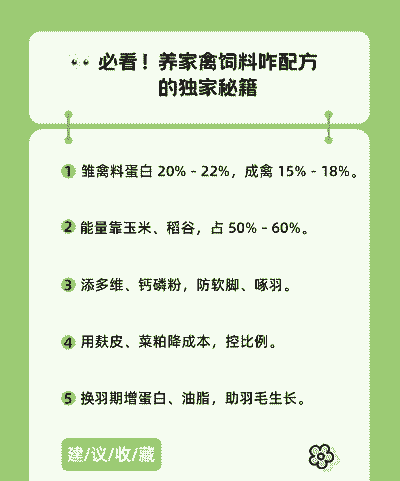 通过以上分阶段配比和注意事项,可确保土鸡健康生长并提升养殖效益。