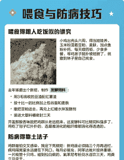 - 每日清洁消毒鸡舍,做好驱虫和疫苗接种。