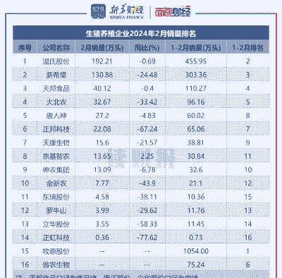 温氏股份:温氏股份在2024年生猪出栏量重回2000万头级别,位居第二。