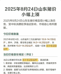 近期价格波动:从8月到12月,济南生猪价格经历了波动,从20.8元/公斤上涨到21.00元/千克,然后下降到7.80元/斤,最后又保持在8.00元/斤。