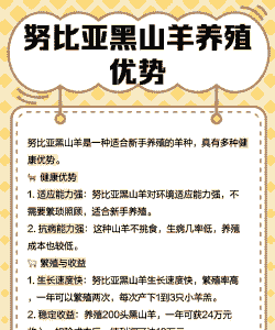 适应能力强:努比亚黑山羊原产于炎热干旱的非洲地区,抗热性能好,但抗寒能力差,适合在南方高温高湿环境下饲养,对饲料要求低,易于监管,适合圈养或放牧。