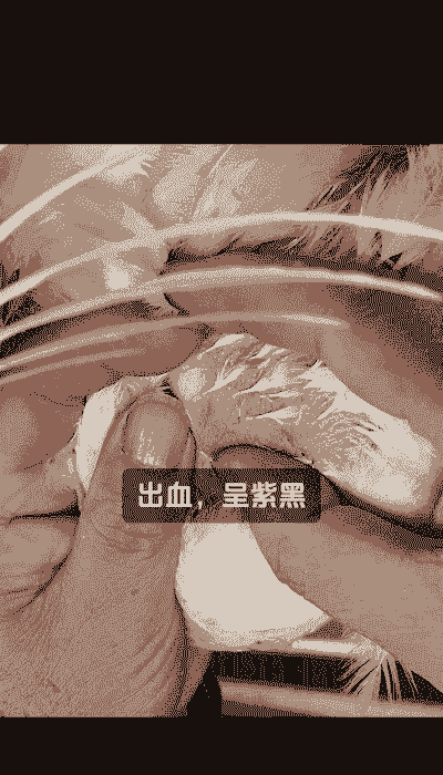 肌肉:出血点或出血块,尤其是大腿内外侧和胸部肌肉。