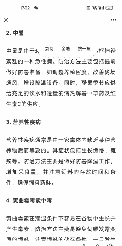 防治:注意饲料的清洁卫生,防止霉变,定期对饲料进行消毒处理。
