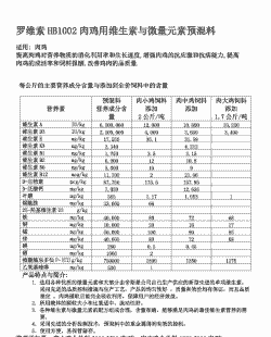 使用说明根据肉鸡的不同生长阶段(如0-5周龄、5-6周龄等),调整预混料的添加比例。