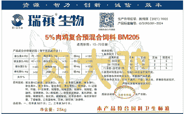 使用说明根据肉鸡的不同生长阶段(如0-5周龄、5-6周龄等),调整预混料的添加比例。
