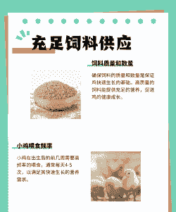 根据肉鸡的不同生长阶段和养殖目标选择相应的饲料,保证营养补充足够。例如,在育雏后期注重补钙,促进肉鸡拉骨架,促进生长。