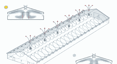 通风管尽量在鸡的前期使用,在通风量大时要结合小窗使用,小窗进风可以促进通风管进的空气混合。