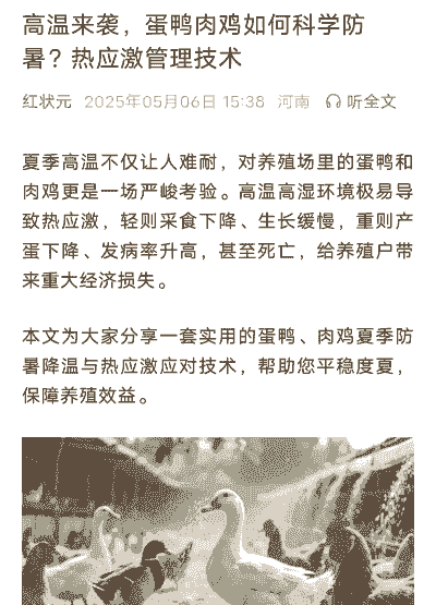 通过以上措施,可以有效降低鸡舍内温度,改善鸡群的生活环境,减少高温对肉鸡的影响,预防热应激的发生。