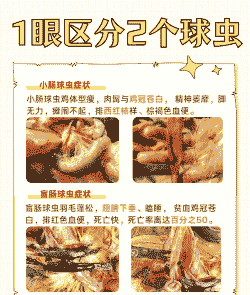 小肠球虫急性型:病鸡间歇性腹泻,贫血,消瘦,多排混有灰白色黏液的稀粪,最后衰竭死亡。