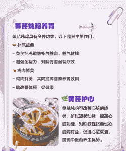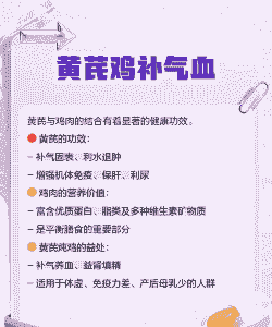 黄芪炖鸡:黄芪炖鸡是一道传统的滋补食品,适合作为日常饮食的一部分,但应注意适量食用,避免过量。
