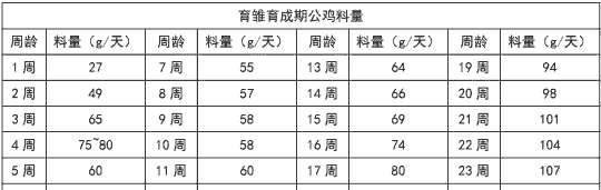 64周龄体重3.4-3.5公斤,总耗料51.5-53.5公斤。