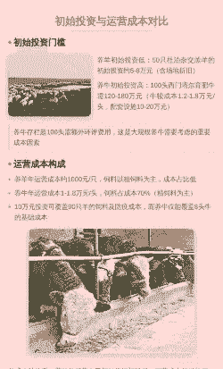 投资成本养牛:前期投资较大,包括牛圈建设、购买牛犊或种牛等,一般需要数万元甚至更多。