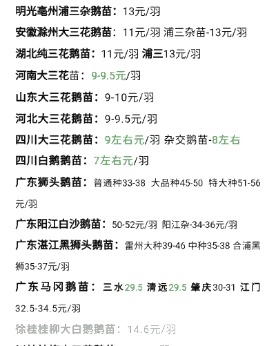鹅苗的价格因地区、品种、大小和购买数量的不同而有所差异。以下是一些具体的价格信息:
