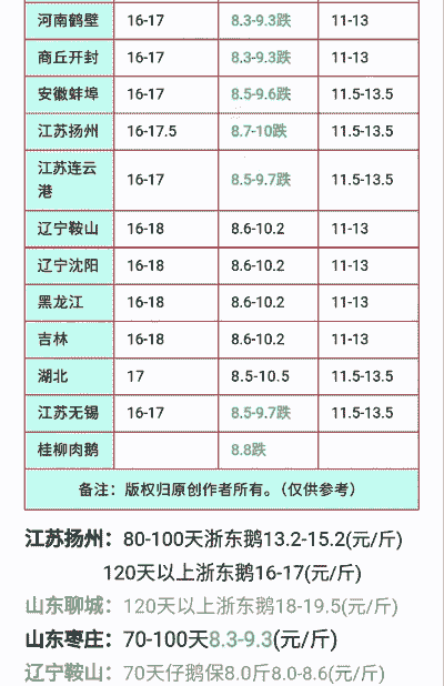 综合以上信息,老鹅的价格大致在 12-17元/斤