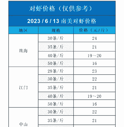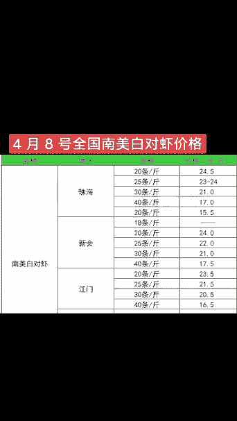 其他价格信息江门地区40头规格虾价在14-16元/斤不等。