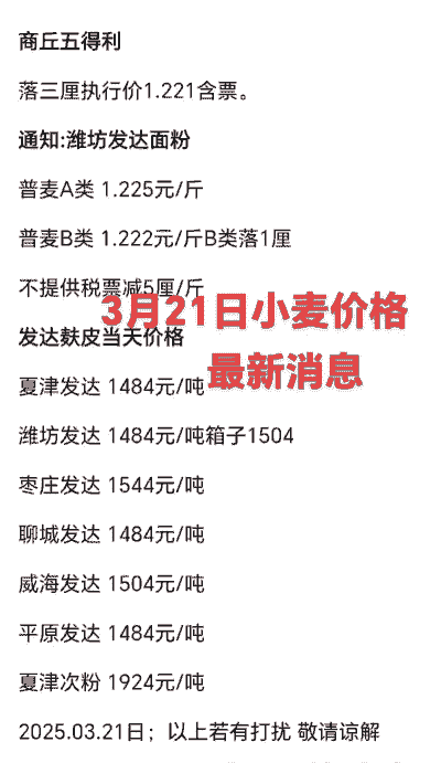 山东菏泽华瑞面业普麦带票收购价1.25元/斤