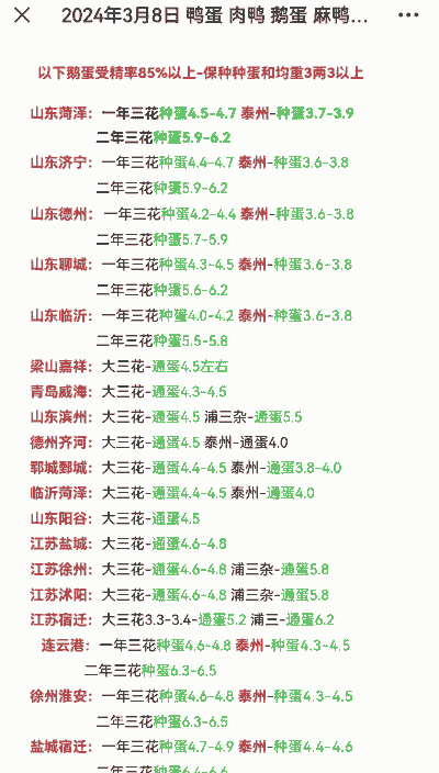 安徽滁州的大三花反季种蛋价格为5.2元/个。