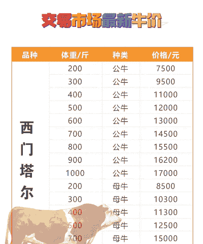 如西门塔尔牛等某些品种,价格可能会更高一些。